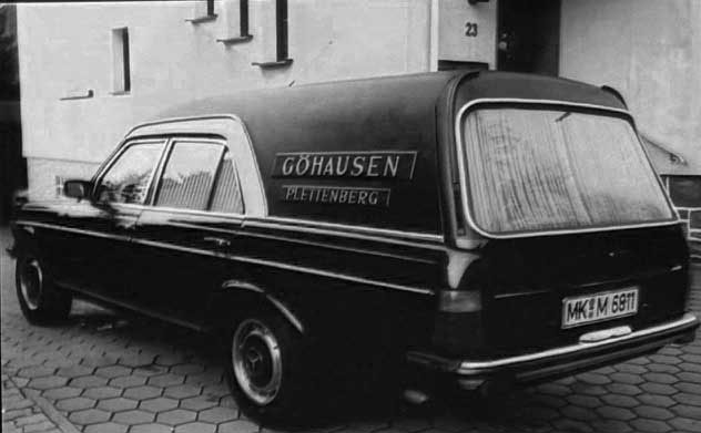 Fritz Göhausen hat nach dem Krieg für fast alle Schreiner / Bestatter Plettenbergs die Bestattungstransporte vom Einsargungsort oder Trauerhaus zu den Friedhöfen gefahren, wozu auch die Beisetzungsfahrten zum Grabe gehörten. Zu dieser Zeit war die Familie Göhausen die einzige Familie in Plettenberg, die einen Bestattungstransport-Anhänger besaß. In den Jahren 1953/1954 wurden Fritz und Maria Göhausen von der Plettenberger Bestatterin Frau Kötter angesprochen, ob sie ihr bestehendes Beerdigungsinstitut übernehmen möchten.
